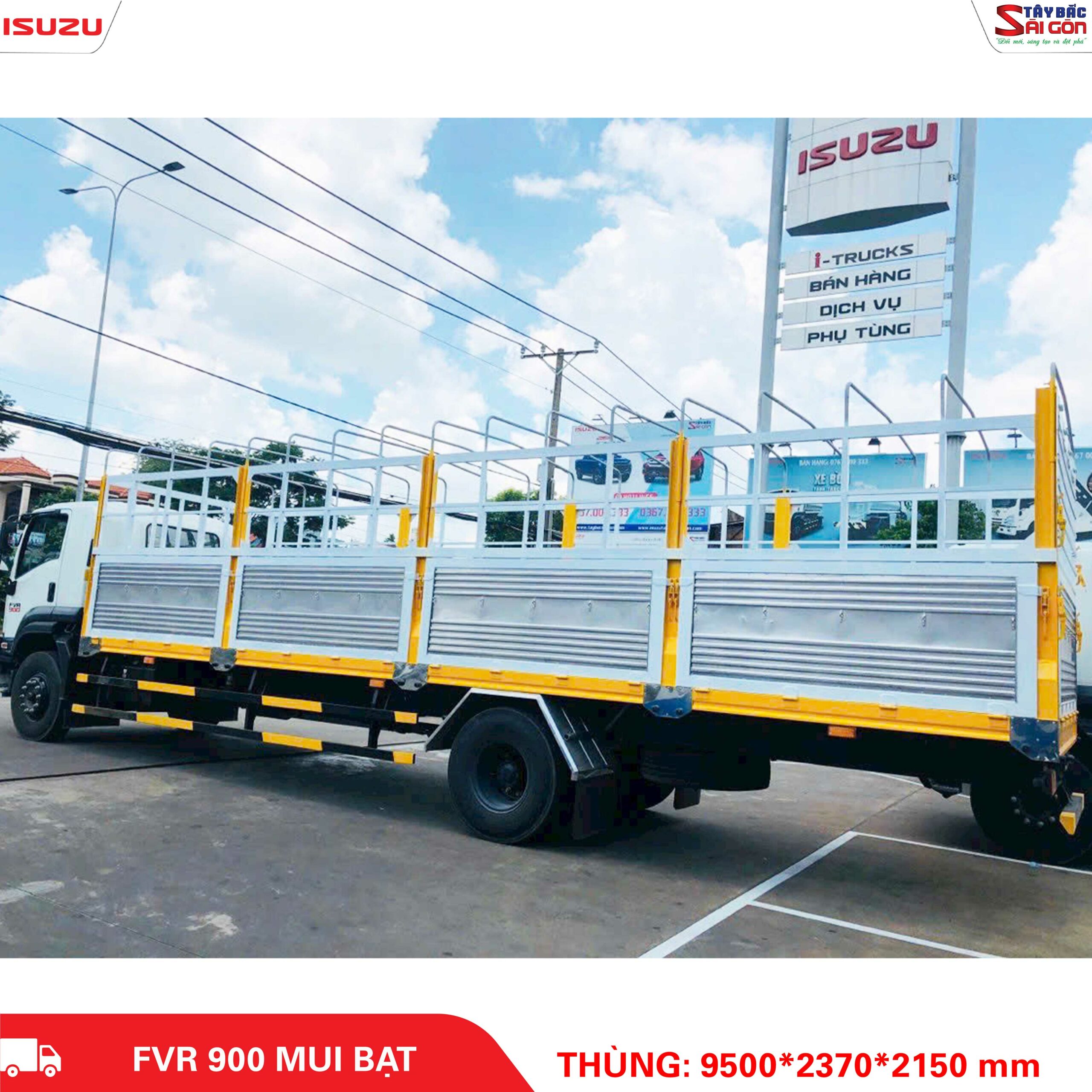 Ngoài ra, Xe Tải Isuzu FVR900 thùng mui bạt cũng được đánh giá rất cao về chất lượng cũng như mẫu mã thiết kế đa dạng, đẹp mắt được nhắc đến là cái tên HOT nhất trên thị trường hiện nay mà các đối thủ khác phải dè chừng vì giá xe tốt nhất trong phân khúc và chất lượng, bên cạnh đó với thủ tục trả góp nhanh gọn đã giúp Isuzu Tây Bắc Sài Gòn trở thành lựa chọn tin dùng với mọi khách hàng.